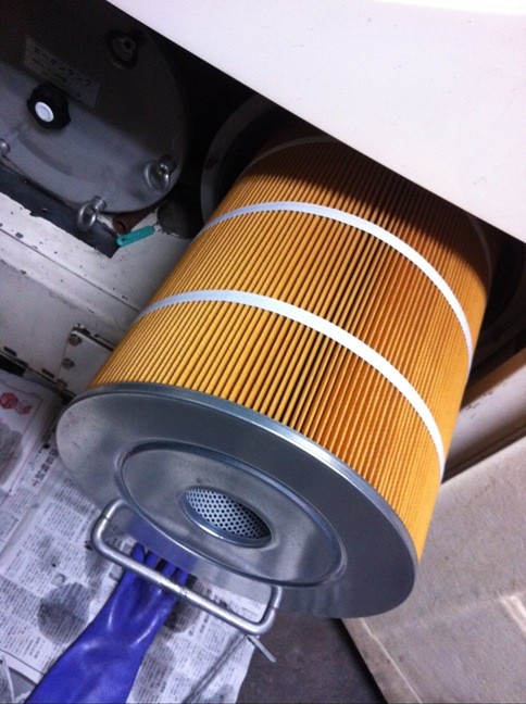 フィルターを梱包してあったポリ袋やごみ袋を被せてフィルターを引き出します。